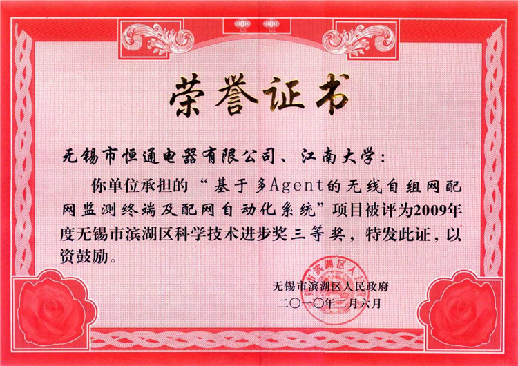2010年濱湖區(qū)科學(xué)技術(shù)進(jìn)步獎(jiǎng)