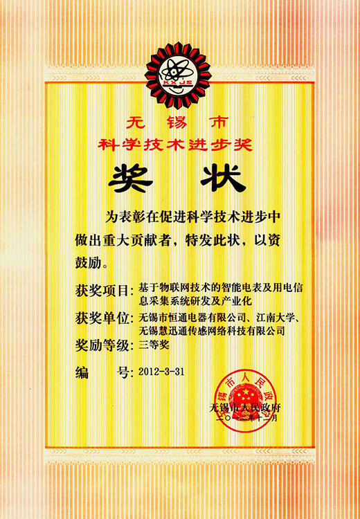 2012年無錫市科學(xué)技術(shù)進(jìn)步獎(jiǎng)