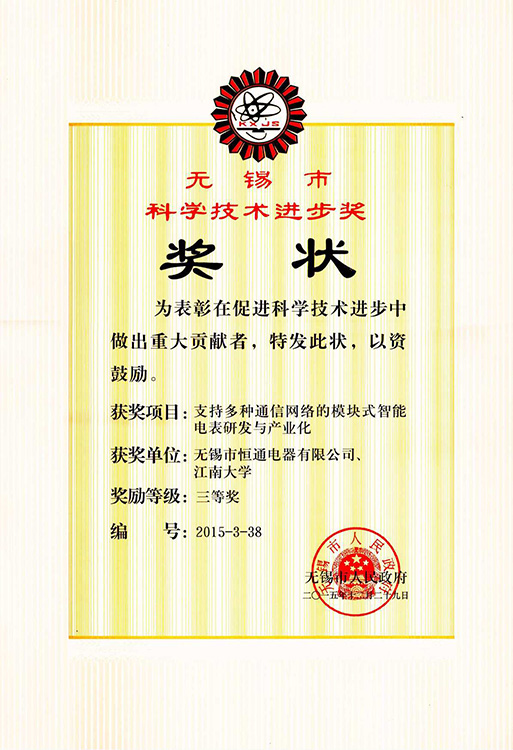 2015年無錫市科學(xué)技術(shù)進(jìn)步獎(jiǎng)
